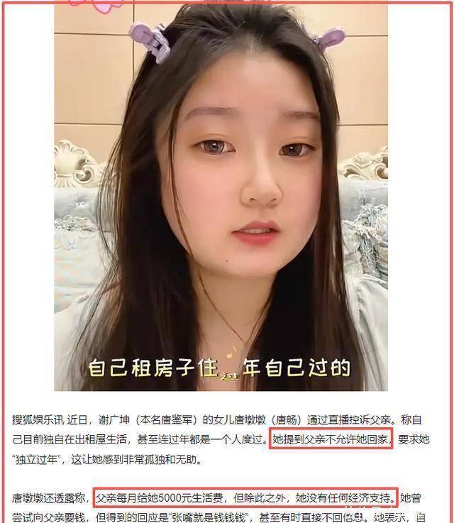 每元的生活费既要负担房租,还要维持生活开销。 作为亲生父亲的唐鉴军, 却始终对女儿的处境不闻不问。 甚至曾拒绝女儿回家过年的请求。